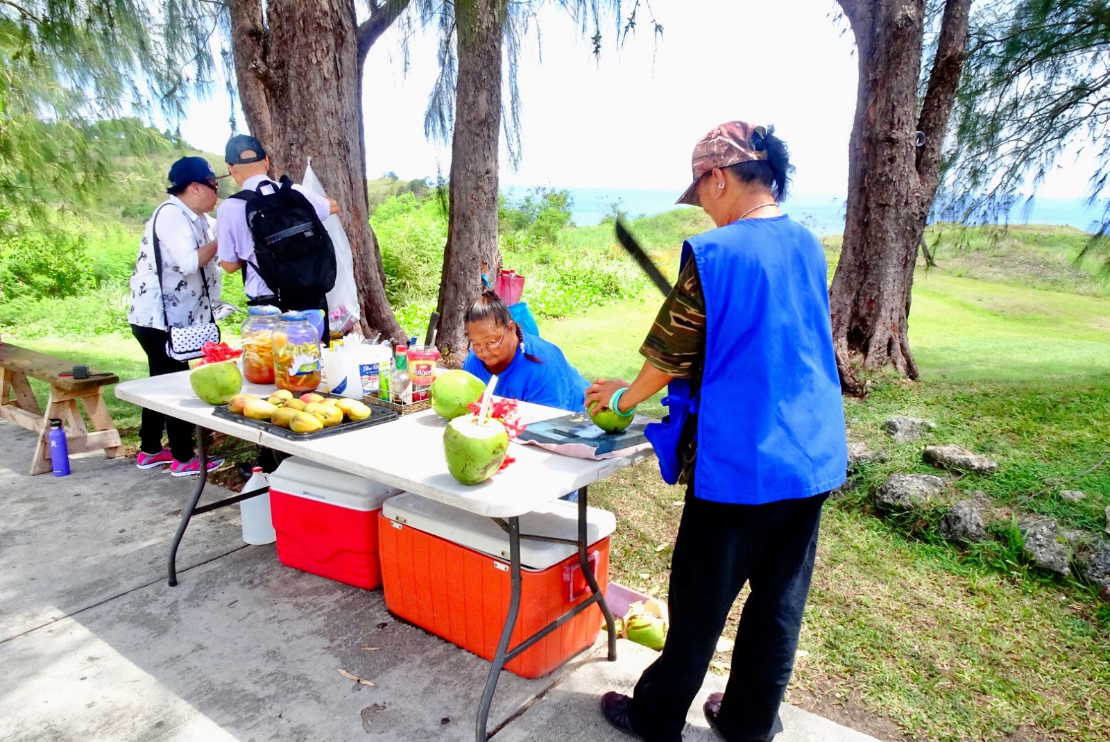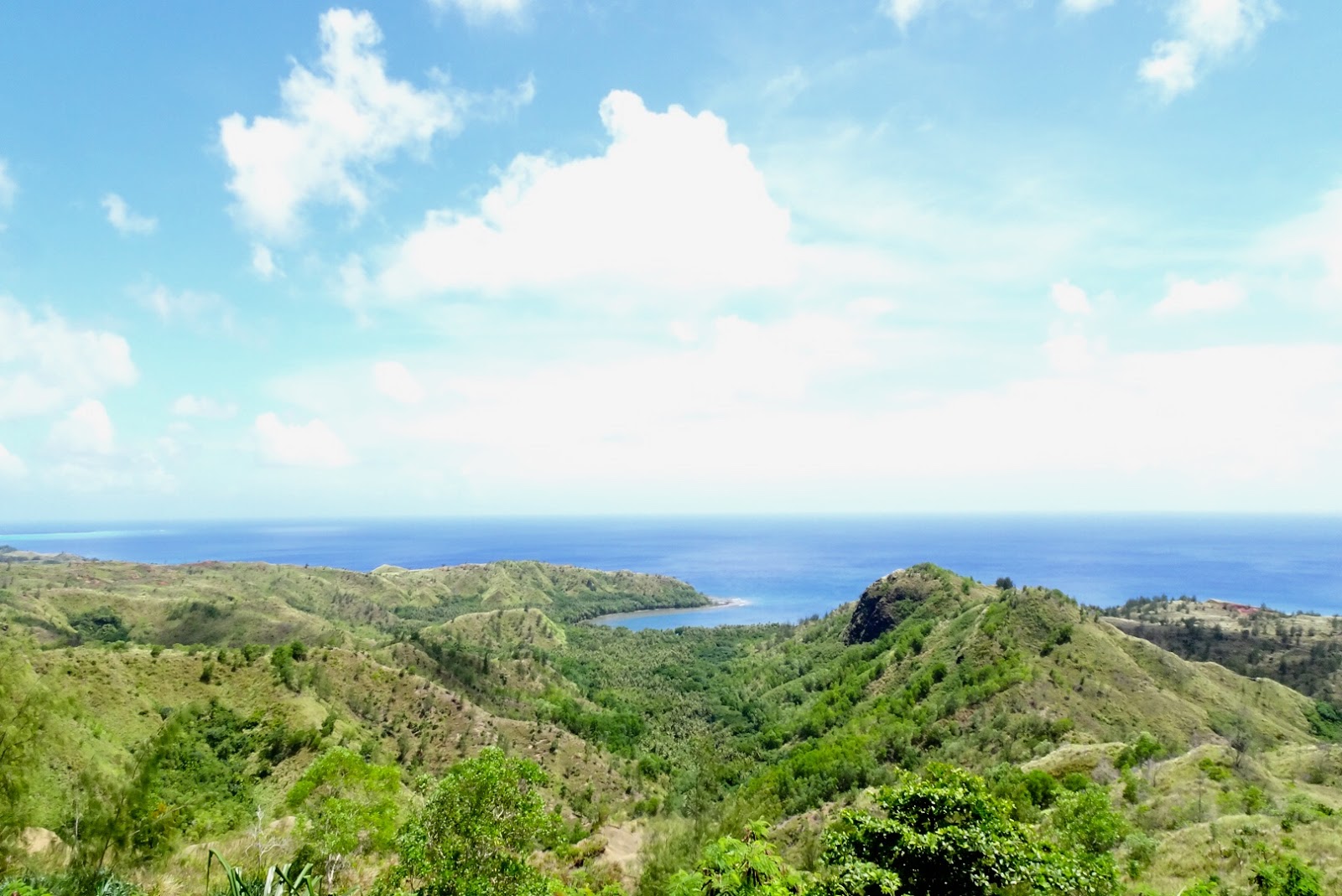 不遠處就是烏美德村(Umatac)能看到可可斯島的色堤灣瞭望台(Cetti Bay Overlook)。在停車場的位置已能飽覽山水風景,是色堤灣瞭望台最美的觀景處。反而登上瞭望台的最高處,眼前的景象會被大樹遮蓋了。有些人在涼亭休息,但應該有蚊子,所以繼續探索下一站。